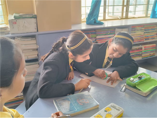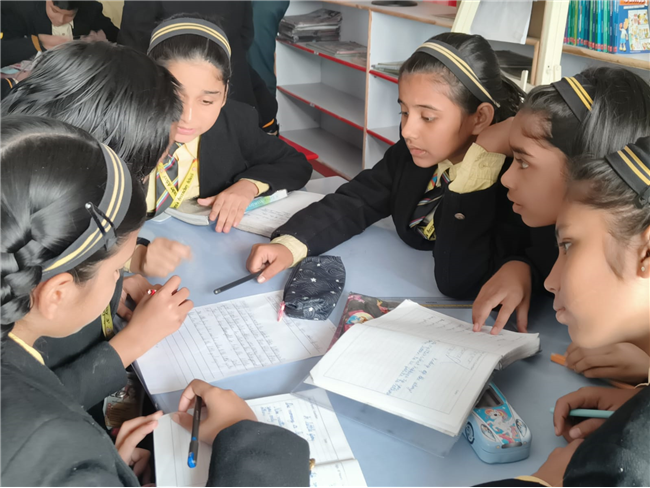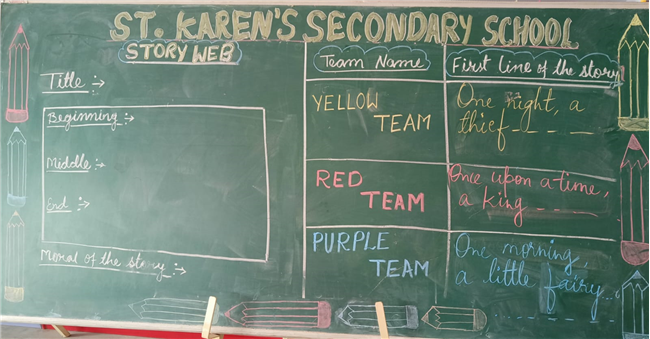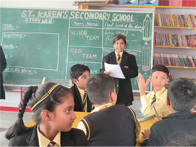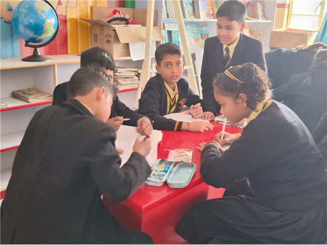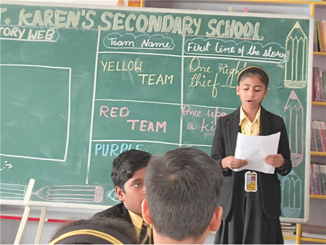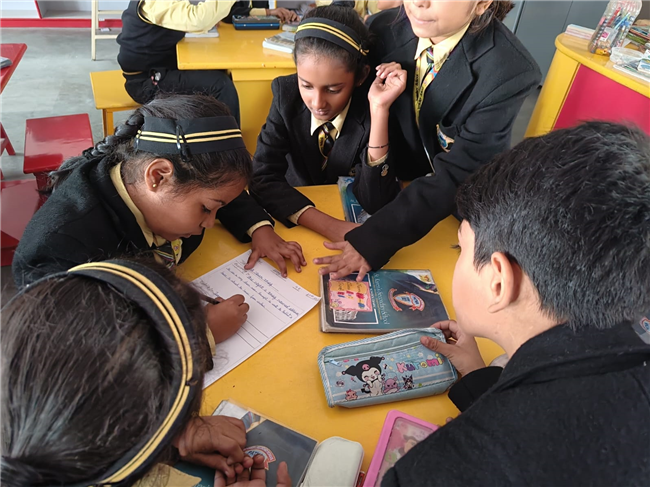 Description: Std : 4C Date : 27th November '24 Subject - Library Topic – Story Web Activity – Writing Story in group ( Using elements of the story) Teacher – Pratibha Raj