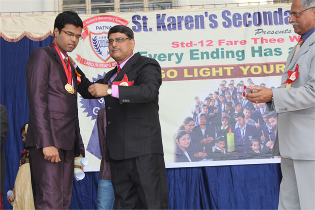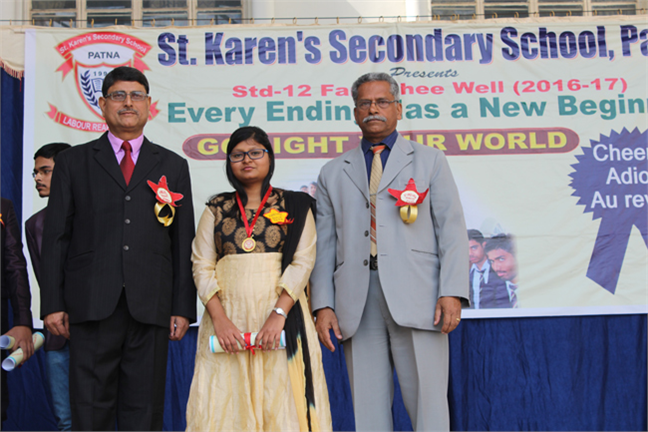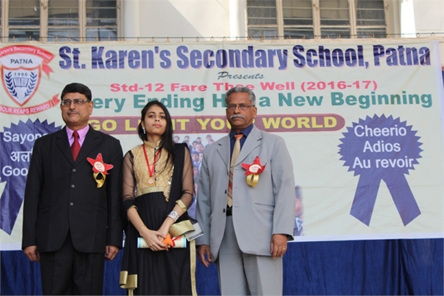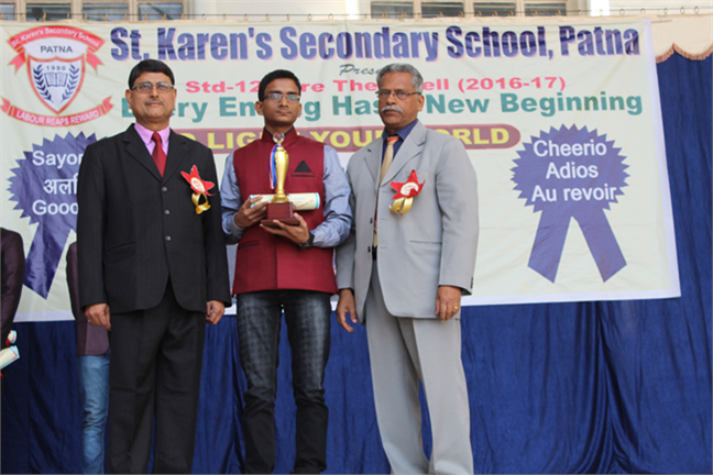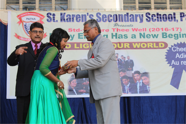 Description: St. Karen’s Secondary School has the cause of feeling proud in as much as it has been actively involved in progress of education in Bihar over the last twenty seven years. The development of the past three decades has proved to be no less than spectacular. It is imperative to say how the Graduation Ceremony of plus two students was started by the students of eleventh in the school. The programme started with ‘LIGHTENING OF THE LAMP’ by the Director accompanied by other dignitaries. The Welcome speech was delivered by the Principal Mr. K. K. Kunjachan. It was followed by the overwhelming and blessing words by the honorable Director, Mr. D. P. Galstaun. The school rendered various programmes such as welcome dance, songs dedicated to the outgoing students, vote of thanks was bestowed by +2 in charge, Mr. P. P. Singh. Many awards were also given to the students who performed excellently in their fields.