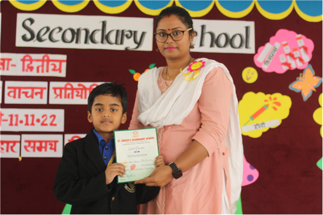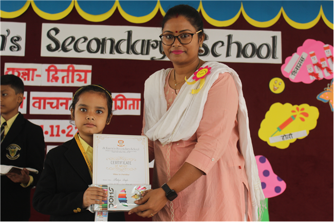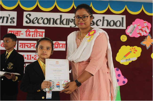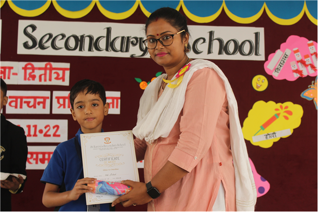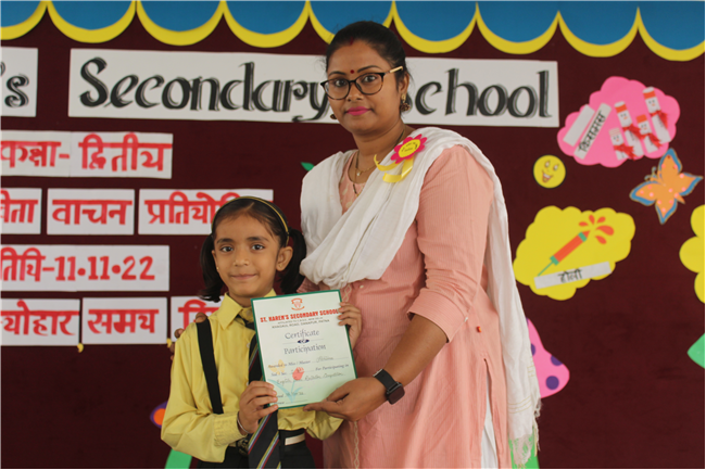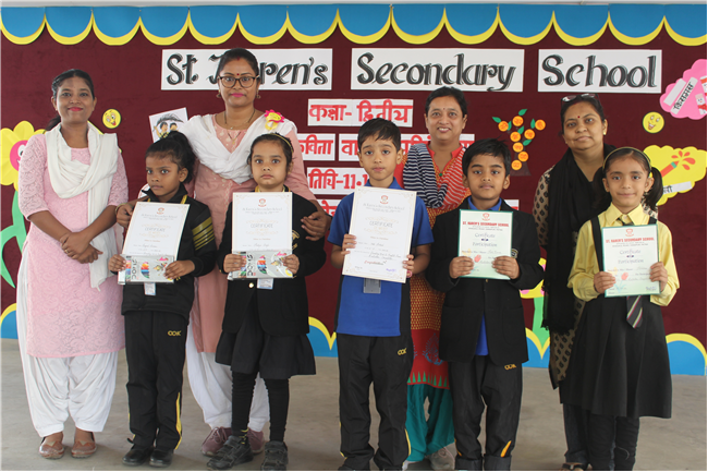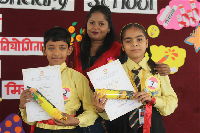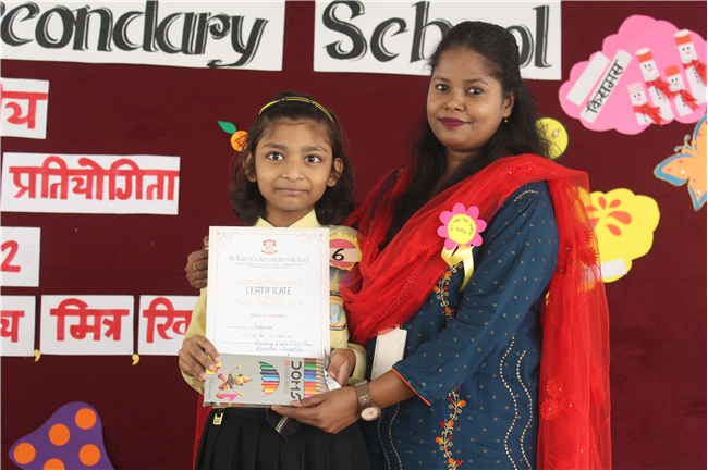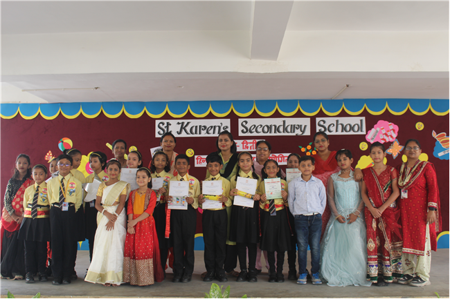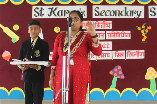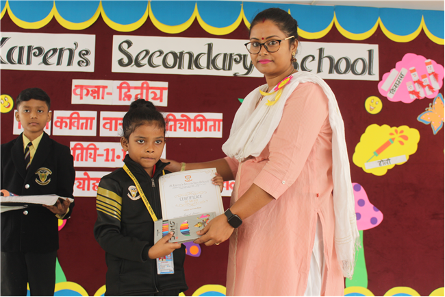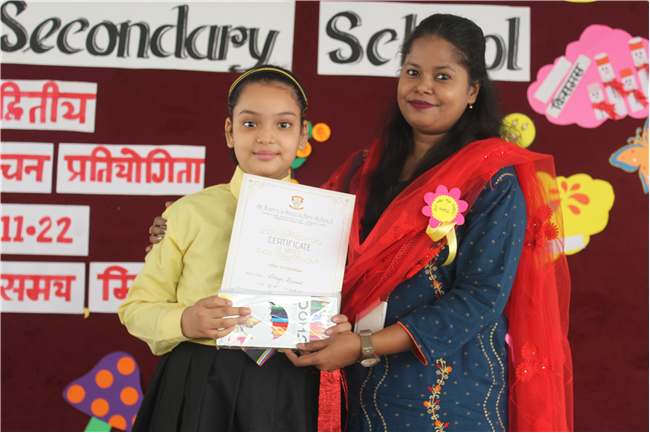 Description: St.Karen's Secondary School primary wing has organised Hindi Recitation Competition on 11th November 2022 for Std. 2. This Competition was conducted just after the morning assembly. Final eight contestants (2 from each section) participated in this competition . Anchoring was done by Std.2 Students itself. Four fillers made this event more interesting and wonderful with their dance. All the performances done by the students were spectacular. They performed well . Winners were selected by three eminent judges. Overall today's competition was mesmerizing.