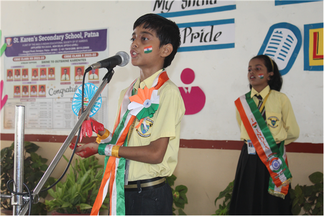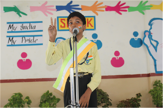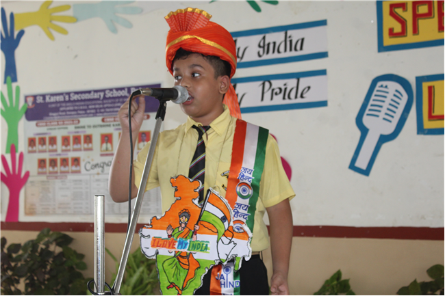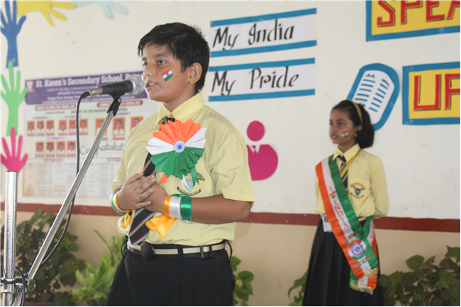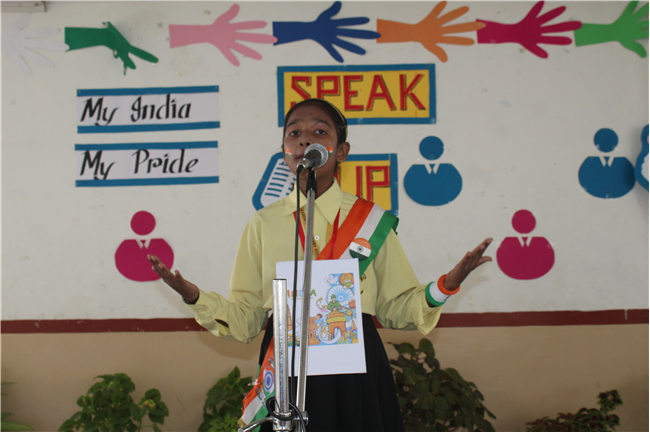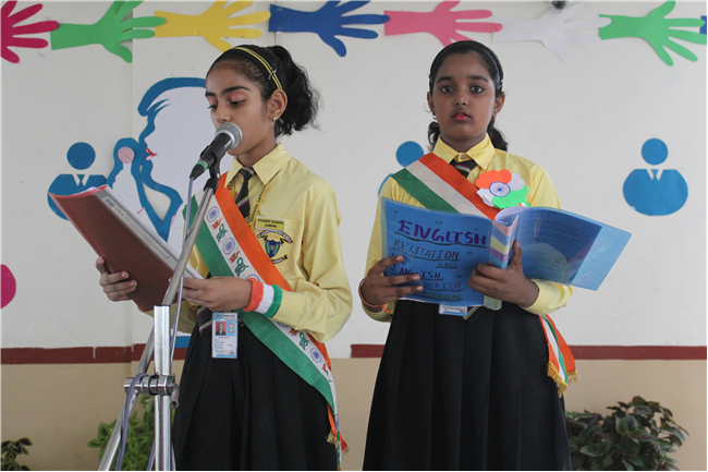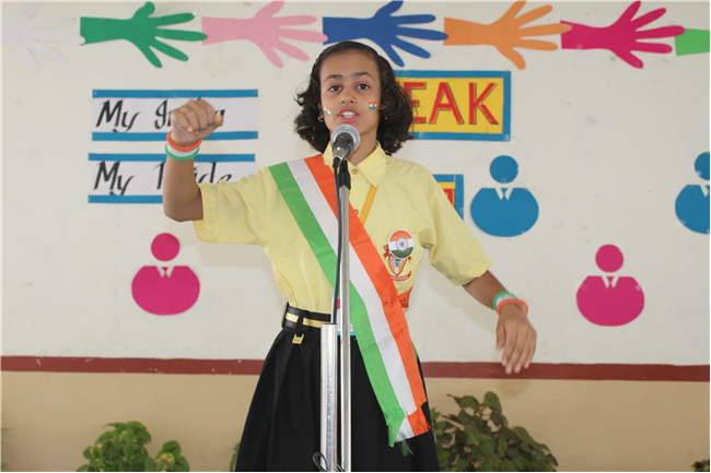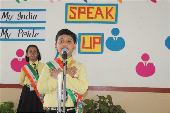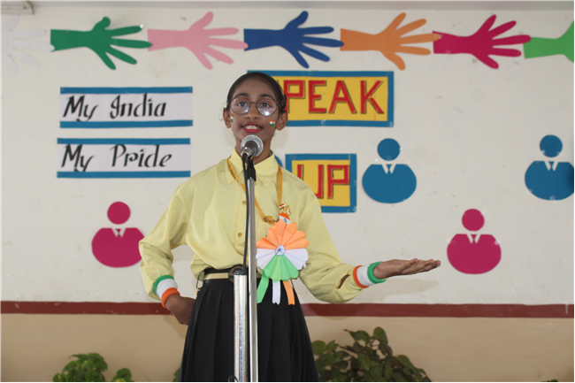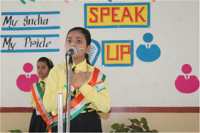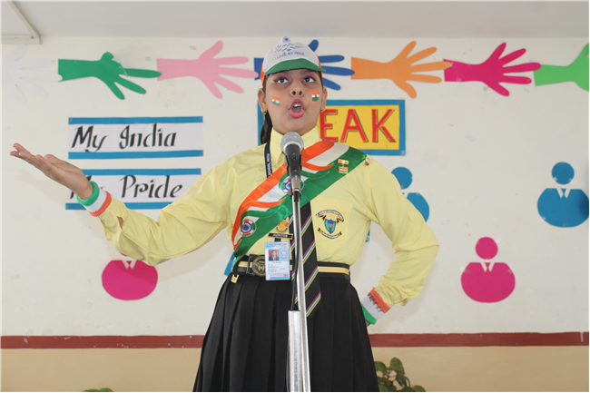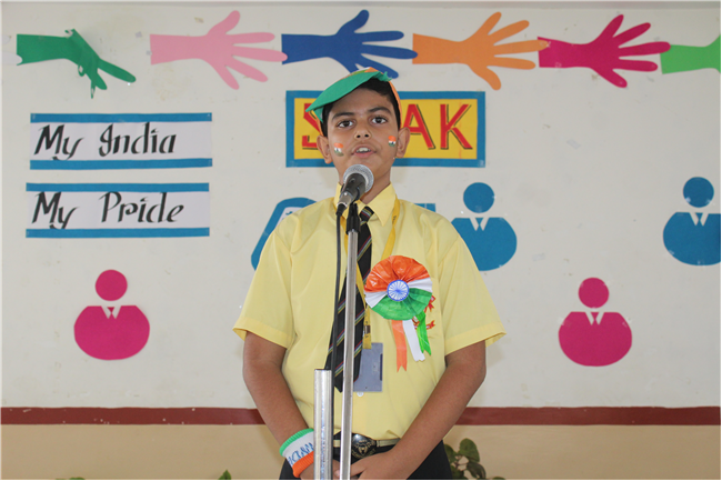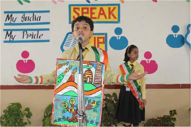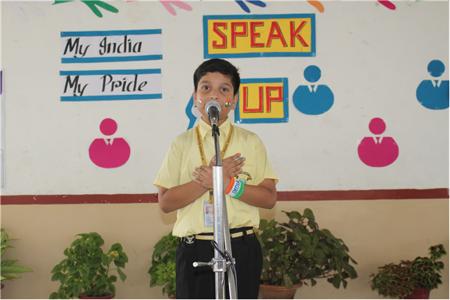 "SPEAK UP " "My pride my nation " for std. 4-5 and recitation on Rainy season was conducted on 26th August . Judges of the day were Soma ma'am, Rahul Sir, and Harsimrat Kaur were much impressed by the presentation and the confidence of the students.