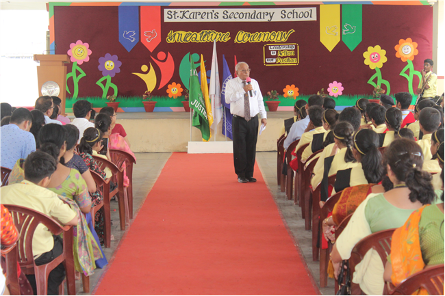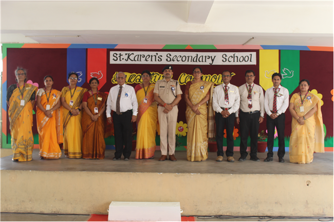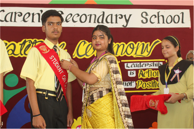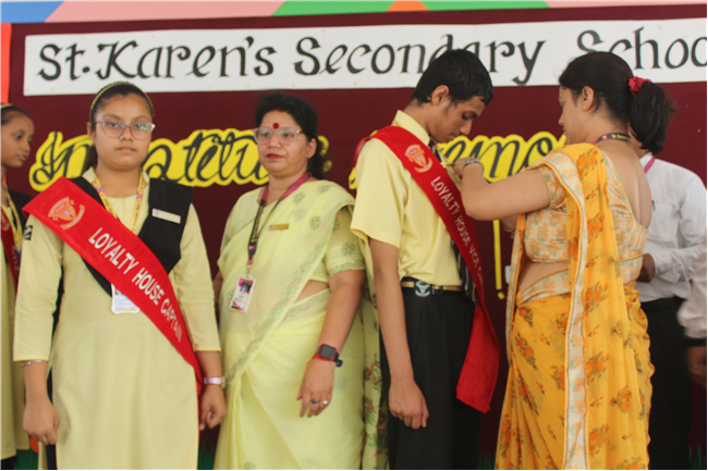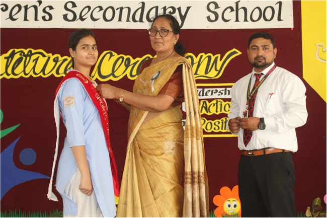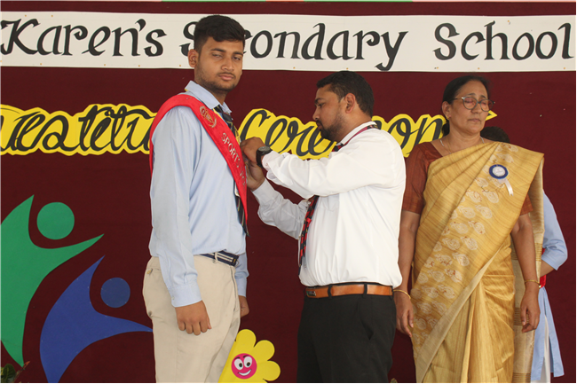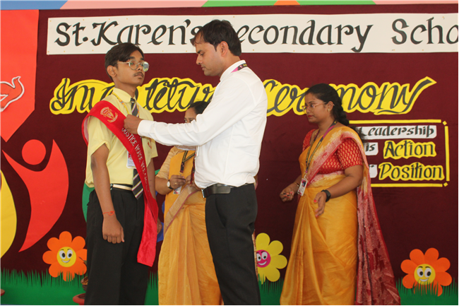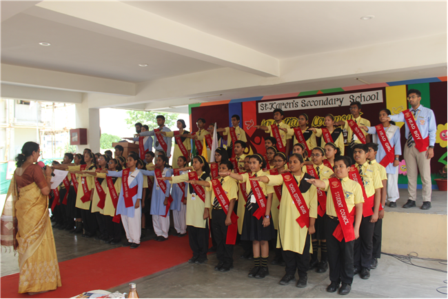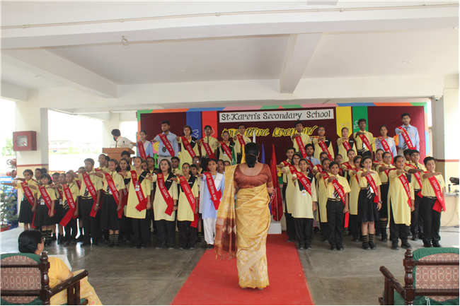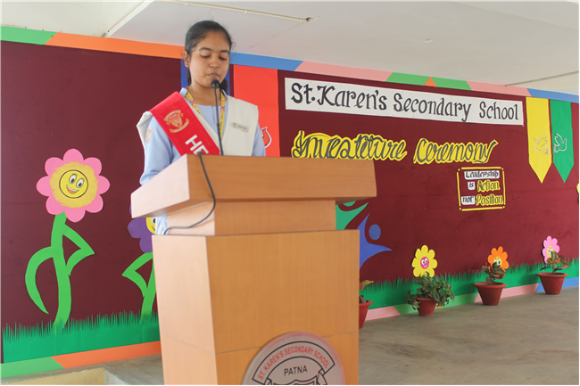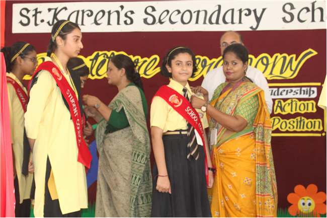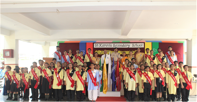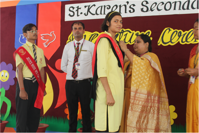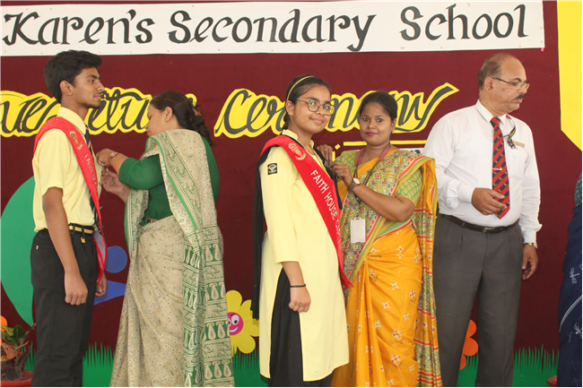 Description: St. Karen's Secondary School, Patna had organised the Investiture Ceremony of the academic year 2023-24 on 16 May 2023 to honour the School Council Body. The House Moderators and Coordinators felicitated and gave badges to their House Captian, Vice- Captain and other members. Teacher incharges of different departments and committees also received badges for their duties.
