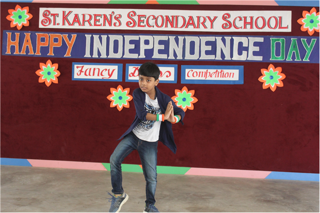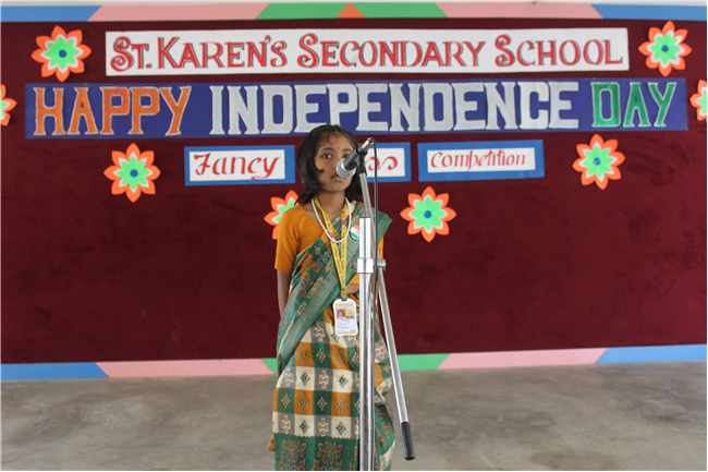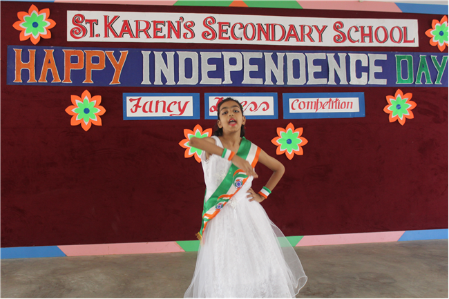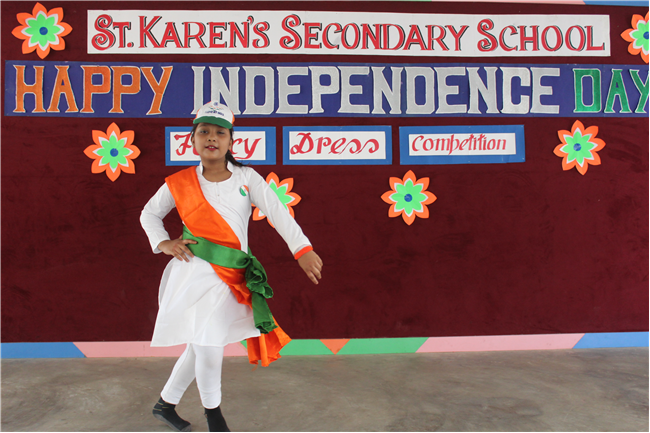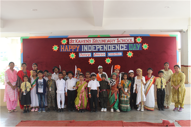 Description: On the eve of Independence Day, Primary Wing of St. Karen's Secondary School organised an Inter Class Fancy Dress Competition’ on 14th August 2023. Final 18 contestants from Std. I and Std. II (2 from each section) participated in this competition. They dressed up like freedom fighters and spoke well. Anchoring was done by students of Std. II. Three fillers made this event fascinating. The performances presented by the finalist were eye-catching. Winners were selected by the three eminent judges. Overall, the competition was mesmerizing.