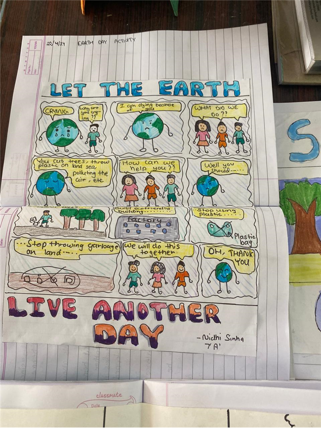 St. Karen's Secondary School commemorated Earth Day with great success. Students from Classes I to III engaged in planting saplings, fostering the growth of green life on our campus. Classes 4 to 6 participated in a plogging drive, raising awareness among the community, Additionally, Class 6 dedicated their efforts to crafting bird feeders, promoting a friendly environment for our avian friends. Moreover, students from Class 7 created captivating cartoon strips advocating for Earth conservation, spreading the message of environmental protection in a creative and engaging manner. Classes 9 and 10 took the initiative to produce a newspaper dedicated to Earth conservation, spreading awareness and sharing valuable insights on how to protect our planet.