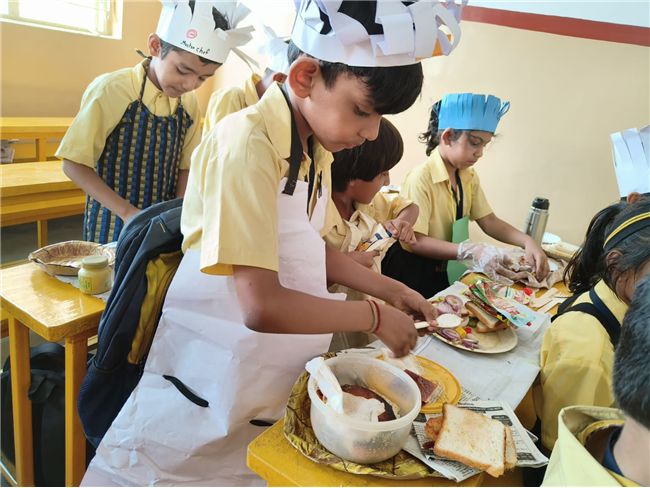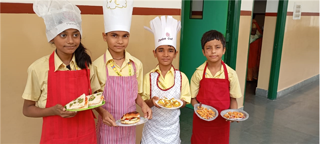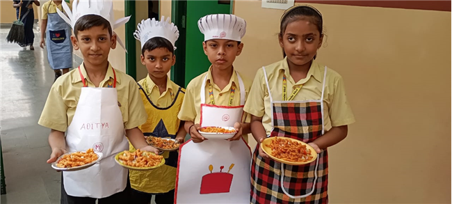 Description: A "Cooking Without Fire" event was organized for students from classes I-XII during lunch hours. They showcased beautifully presented food items, highlighting their creativity and sharing spirit. The students had a great time, especially since it was the last working day before the summer break.