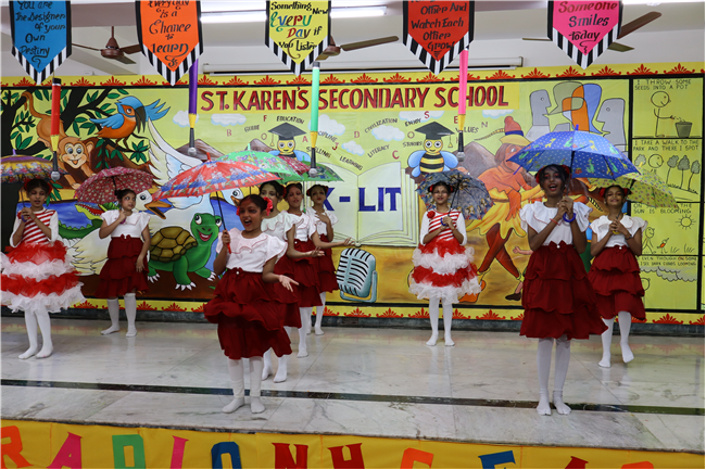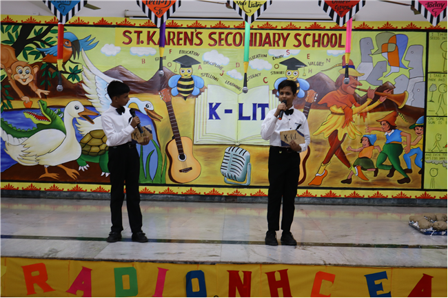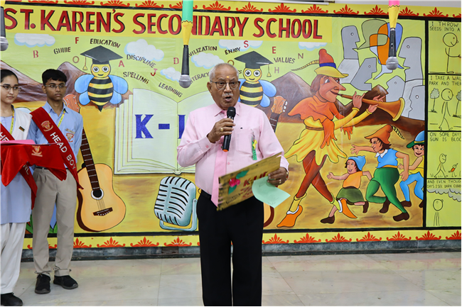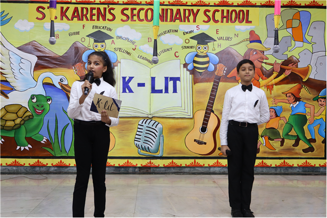 Description: The English Department of St. Karen’s Secondary School proudly orchestrated the K-Lit Fest, a vibrant literary extravaganza that showcased the exceptional talents of students from various branches of the St. Karen’s group of schools. The event, held on October 5, drew enthusiastic participation, fostering a spirit of competition and creativity among budding literary stars. The festival was honored by the presence of Mr. D. P. Galstaun, Director of the St. Karen’s Group of Schools, who served as the chief guest. His inspiring words motivated students to embrace their literary passions and strive for excellence. The event also welcomed esteemed guests of honor, including Mrs. Sharon Galstaun, Academic Director, Mrs. Shefali Shrivastava, Supervisor of School System, Mrs. Seema Singh, Principal of St. Karen's High School; Mrs. Manisha Lal, Principal of St. Karen's Collegiate School; Mrs. Angela Knight, Incharge of St. Karen's Primary School; and Mrs. Angela Anthony, Coordinator, St. Karen’s Collegiate School. A range of exciting events took center stage at K-Lit Fest, including: • War of Words: A fierce Spell Bee competition that challenged students to articulate their English vocabulary effectively. • Graphic Giggles: A creative comic strip contest that allowed participants to express their art through illustrations and dialogues. • Unleash the Verse/Poetry: A captivating poetry enactment segment where students brought their verses to life. • Robe & Role: A character dramatization event that showcased students' acting talents potraying the famous characters like Dr. Faustus, Juliet, Cassius, Mrs. Malaprop, Medusa and so on. • Colloquium: An engaging group discussion that encouraged critical thinking and dialogue. • Rhythms of Panchatantra: A dance drama that celebrated traditional storytelling through movement. • Tiny Theatre Treasures: A reader’s theatre segment that highlighted the joys of reading aloud. The judging panel, comprised of notable educationist from the city including Mrs. Shruti Shahi, Dr. Runoo Ravi, Mrs. Archana Rani, and Mrs. Pallav Jha, evaluated the performances, providing constructive feedback and encouragement to all participants. The K-Lit Fest 2024 not only showcased the literary talents of students but also fostered camaraderie and a love for the arts within the St. Karen’s Group of Schools. As the festival came to a close, it left an indelible mark on the hearts of all participants and attendees, inspiring a continued pursuit of creativity and expression.