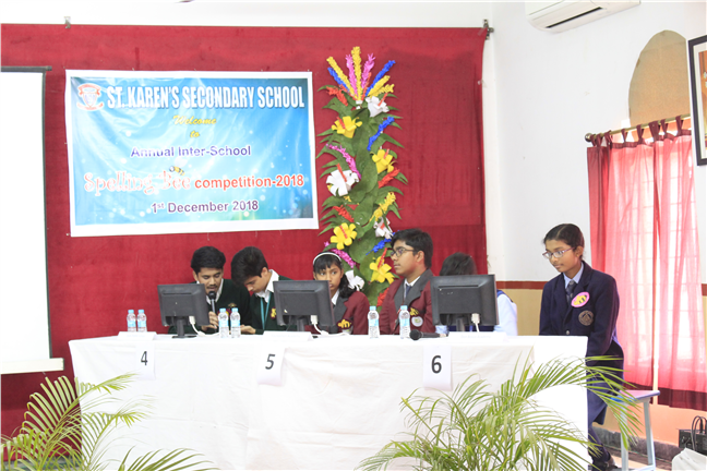Description: Today on 01.12.2018, St. Karen’s Secondary School organised an “Inter-School Spelling Bee Competition” in which 16 leading schools of Patna viz. St. Karen’s High School, St. Dominic Savio High School, International School (CBSE), International School (ICSE), Loyola High School, St. Karen’s Secondary School, Delhi Public School, Don Bosco Academy, Army School, Maa Maitrayini Yogni Sec. School, Foundation Academy, Dr D.Y. Patil Internation School, Holy Cross International School, Scholar’s Abode School, Kendriya Vidyalaya (Danapur), Radiant International School has participated. The Competition saw vibrant shades of intellect healthy encounter and enthusiasm. The programme was inaugurated by lighting of the lamp by Chief Guest Mrs Aparna Shrivastav, Chief Central Examiner, U.K. University. The competition was a true assessment of vocabularies, jumbled words, homophones, antonyms, synonyms, figurative expressions, find the correct spelling etc. The competition had many rounds to analyze and assess the power of the participants. The Hon'ble Cheif guest encourages the students for their interest and talent in extra-curricular activities and congratulated the school for the honest effort. Mr D.P. Galstaun, Director, St. Karen’s School, highly appreciated the enthusiasm and skills of the participants of the different schools to enrich the level of the language and sports. The Principal Mr K.K. Kunjachan addressed the students and congratulated them for the spectacular performance. The occasion was graced by the solemn presence of the Director, Principal, +2 Incharge and all the teachers.