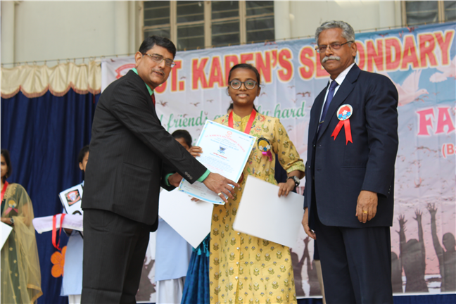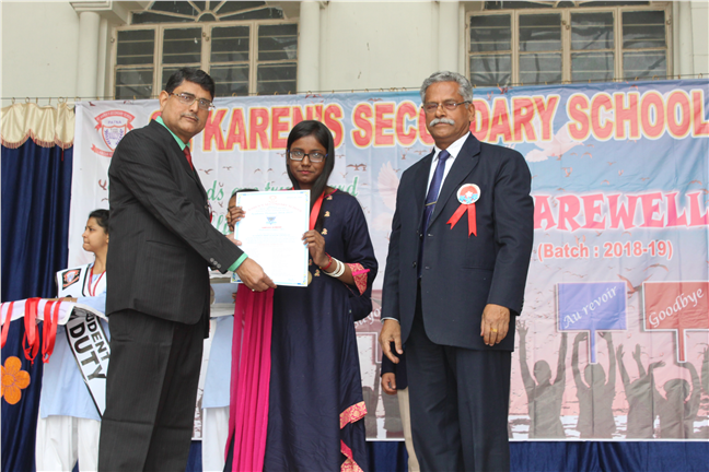 Description: St. Karen’s Secondary School has the cause of feeling proud in as much as it has been actively involved in progress of education in Bihar over score and a quarter. The development of the past almost three decades has proved to be no less than spectacular. It is imperative to say how the Graduation Ceremony of plus 2 students was started by the students of eleventh in the School. The programme started with ‘Lighting of the Lamp’ by the Director Sir accompanied by other dignitaries. The welcome speech was delivered by the Principal, Mr. K.K. Kunjachan. It was followed by the overwhelming and blessing words by the honourable Director, Mr. D.P. Galstaun. The School rendered various programmes such as welcome dance, songs etc. dedicated to the outgoing students; vote of thanks was bestowed by +2 In-charge Mr. P.P. Singh. The occasion was graced by the solemn presence of Vice Principal, teachers and all staff members of St. Karen’s Secondary School. In addition to it, credentials and medals were distributed.
