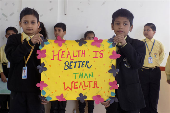 Description: The morning sets the day and the assembly paves the way for our students to rejuvenate their spirits, remain rooted in the moral values and unleash their vitality to channelize their energy in a positive direction. Today's assembly was based on the topic"HEALTH IS BETTER THEN WEALTH"