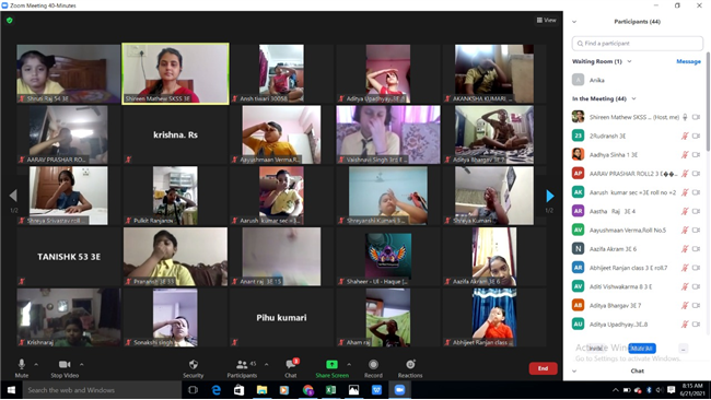 Description: "Happy Soul, a fresh mind, and a healthy body, all these can be achieved with yoga". St. Karen's Secondary School celebrated international yoga day on 21st June 2021. All students of Std 1to 12 participated in the program. The day started enthusiastically with meditation and different yoga postures under the guidance of the teachers, and importance of yoga in day to day life was explained. This day was different because the students were able to concentrate more.