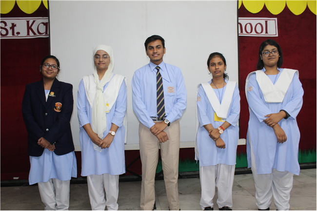 Description: Inter class Extempore competition for Std.11 was organized by English Department on 29 November 2021 on the theme"National Integration". Seventeen students from seven sections of Std.11 participated in it. Honorable Principal ma'am,+2 Incharge PP Sir, Teachers of Std.11 graced the occasion with their presence. Ashfee Khan of Std. 11-G, Medha Verma of Std. 11-G and Shayan Khan of Std.11-D secured First, Second, and Third prizes respectively. Along with these Aishana Kumar of Std.11-E and Arya Singh of Std.11-C were given promising speaker and audience choice awards respectively.