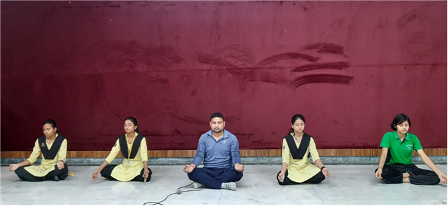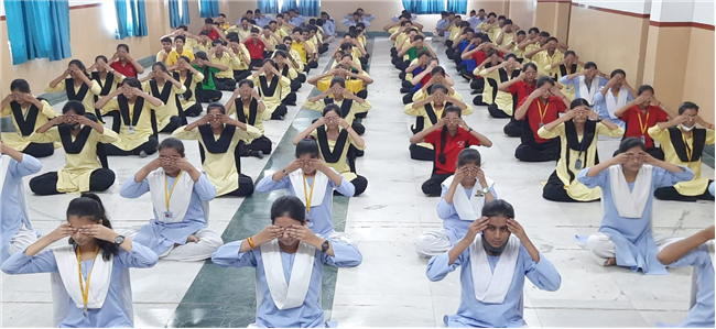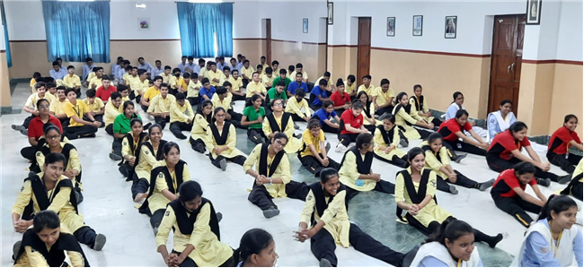 Description: International Yoga Day was observed on 22.06.22 with great energy and peace. Students practiced yoga and meditation . The physical and yoga teachers encouraged students to keep practicing different aasanas everyday for a happy and healthy life.