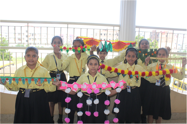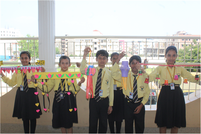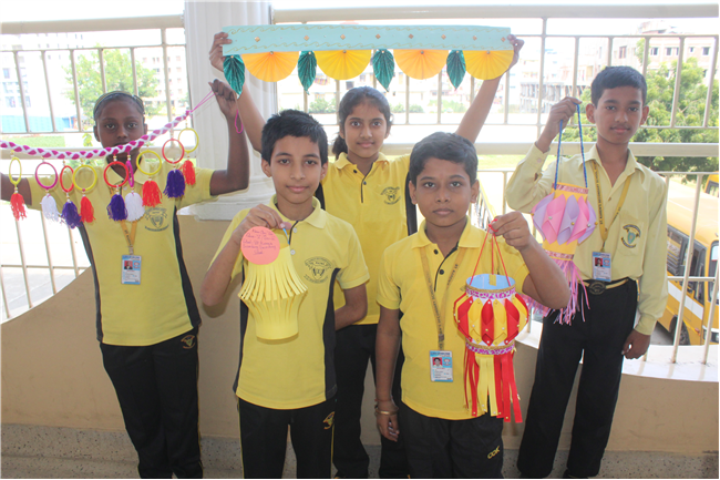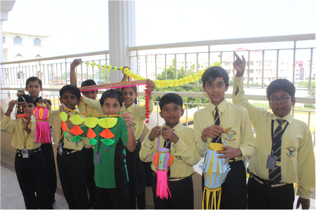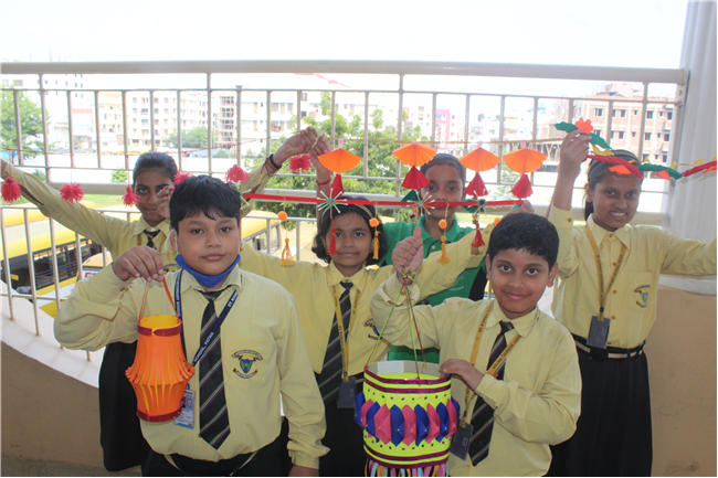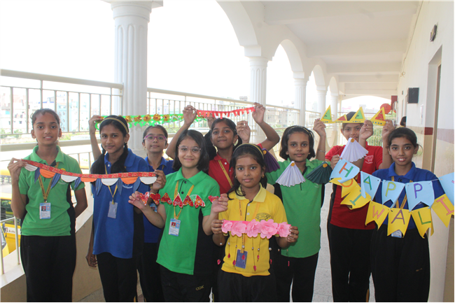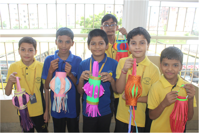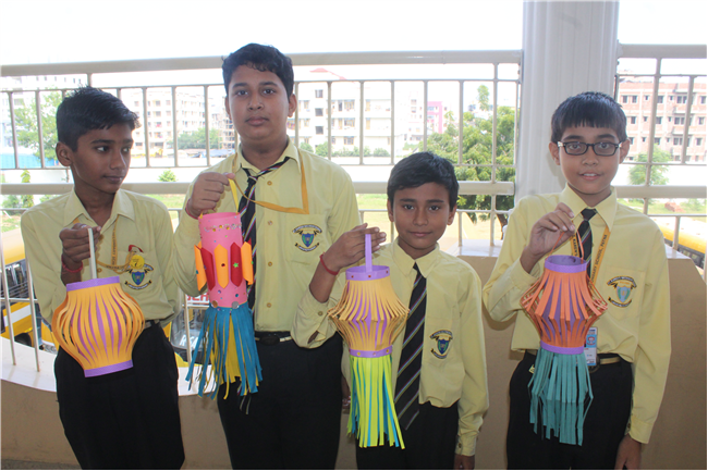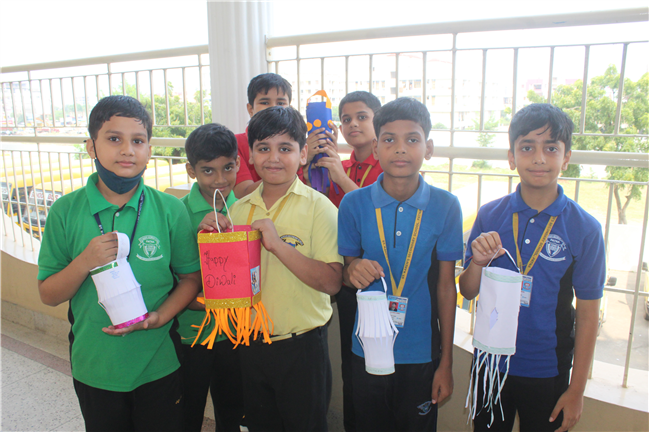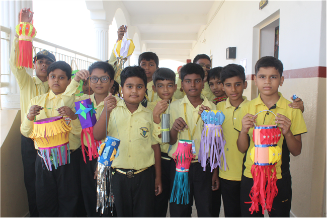 Description: Diya and Thali decoration activity class for Std.1 to 3 TORAN AND DIWALI LANTERN MAKING ACTIVITY Std 4 & 5.