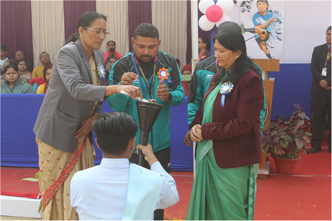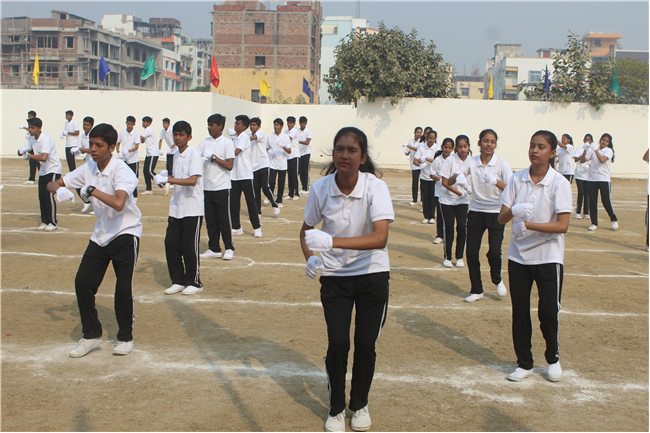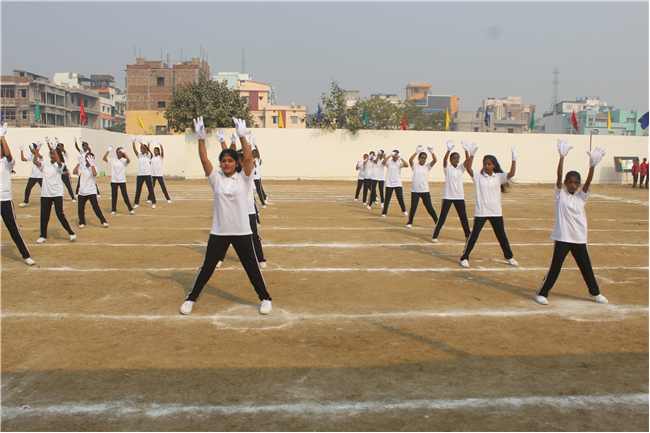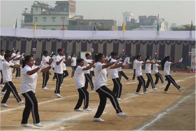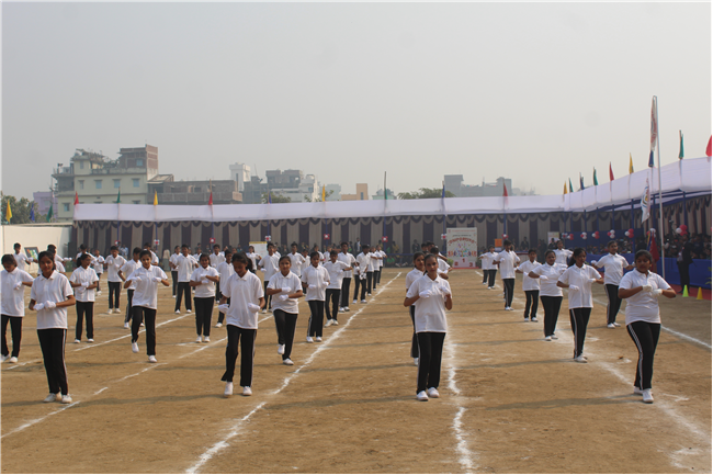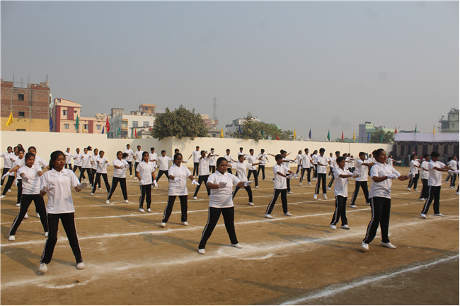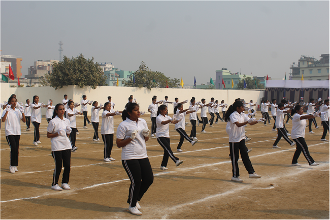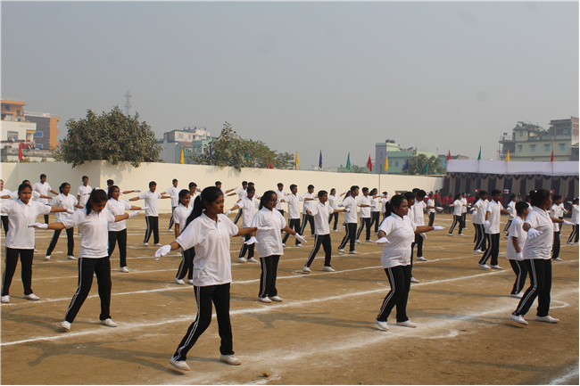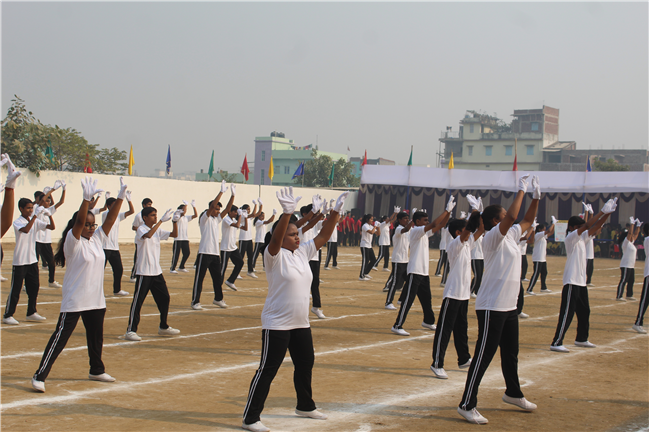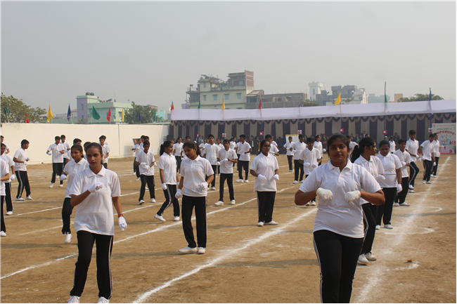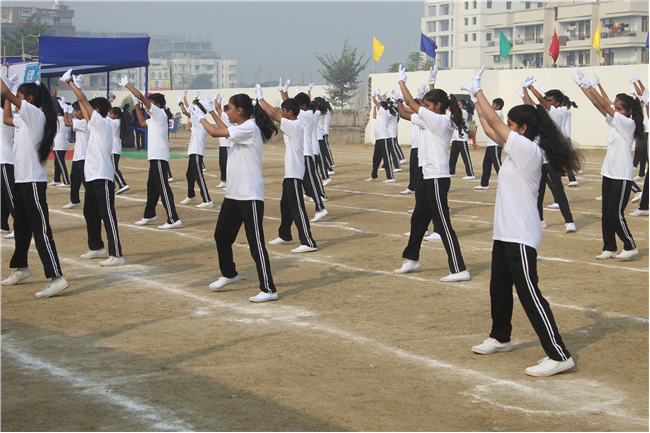 An array of well prepared programmes comprising March Past, Drills, Aerobics, Yoga, Balancing the Balls and a variety of races presented by the brilliant students dressed up in colourful costumes won the hearts of the spectators.