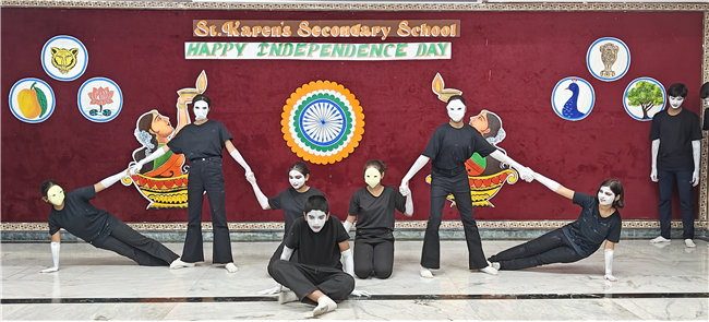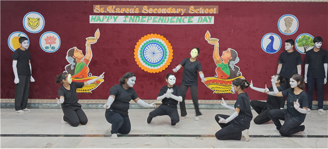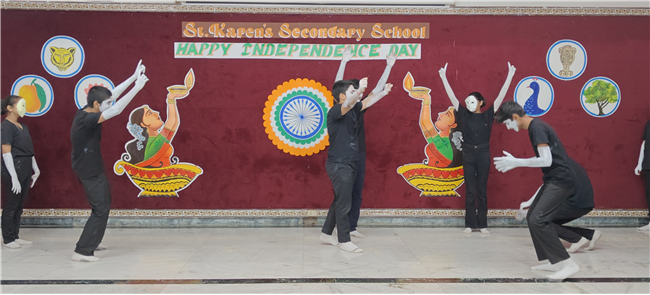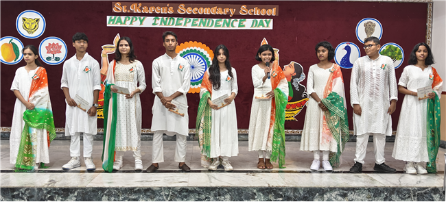 The spirit of patriotism filled the air as St. Karen’s Secondary School celebrated Independence Day with pride and grandeur. The celebration commenced with the Principal hoisting the national flag, followed by a heartfelt address urging everyone to cherish freedom while shouldering the responsibility it entails. The programme featured melodious patriotic songs, a powerful mime on freedom, a moving one-act play on saving the girl child, and an inspiring speech by Ayush Anand of Class 10. A soul-stirring qawwali left the audience spellbound, while the tiny tots from the primary section won every heart by portraying forgotten legends such as Rani Durgavati, Bhima Nayak, Khudiram Bose, Jatin Das, and others. The Vice Principal brought the event to a close with a gracious vote of thanks, appreciating the presence of parents, the dedication of the participants, and the excellence of the performances.