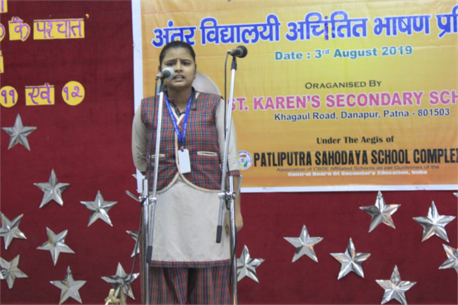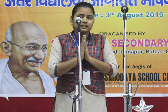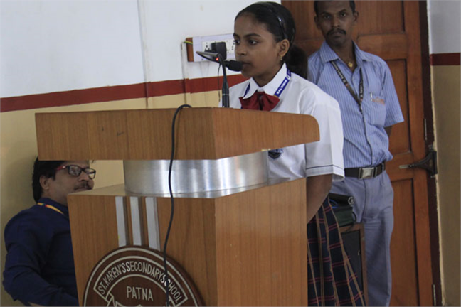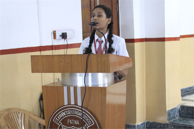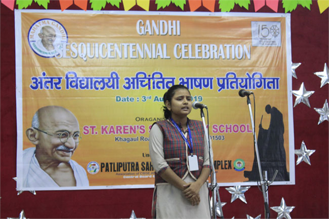 Description: ST. KAREN’S SECONDARY SCHOOL, PATNA HAS ORGANISED AN INTER- SCHOOL EXTEMPORE COMPETITION ON THE THEME OF MAHATMA GANDHI’S LIFE AFTER 1930. THERE WERE STUDENTS FROM 27 DIFFERENT SCHOOLS OF PATNA. THEY VERY DISCSIPTIVELY SPOKE ON EVERY MINUTE DETAILS OF MAHATMA GANDHI. THE STUDENTS TOOK THE PLEDGE TO FULFILL THE DREAMS OF MAHATMA GANDHI. THE CHIEF GUEST AND THE PRINCIPAL CONCLUDED THE EVENT WITH A WORD OF APPRECIATION.