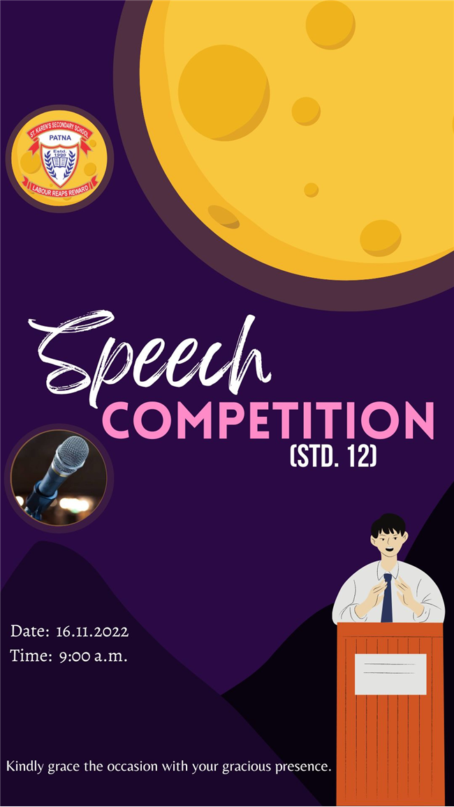 Event Date : 16th Nov, 2022 Created Date : 16th Nov, 2022 Total Photos : 21 Description : Inter-Class Speech Competition Std.12