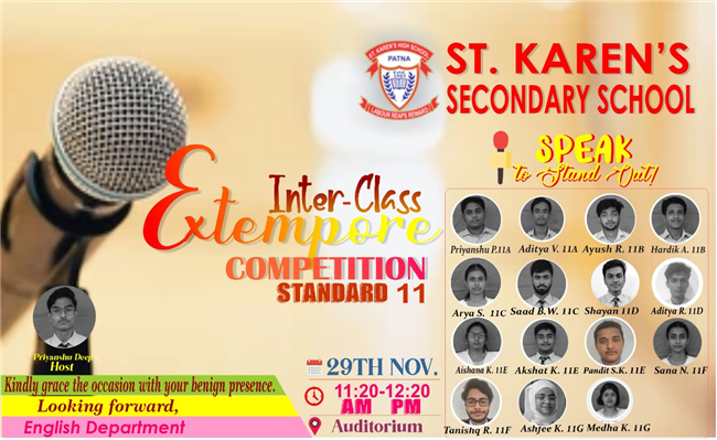 Event Date : 29th Nov, 2021 Created Date : 29th Nov, 2021 Total Photos : 27   Description :  Inter class Extempore competition for...